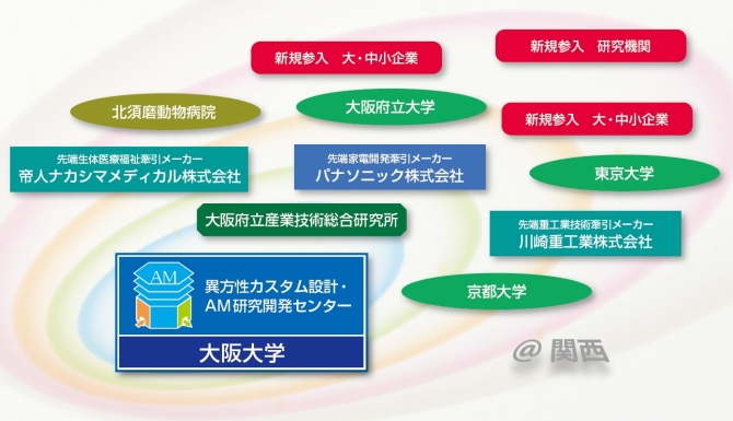 本センターでは、新たなものづくり新市場創出のため、異方性をテーマに関西地域に根差した産官学を中心にしたものづくり拠点を形成し、関西発の持続的イノベーションシステムを構築することを目指しています。そのためには、新たなプレーヤーの参画、プレーヤー間の結合を促進することで、新たな製品を次々と創発する、まさに進化するプラットフォーム構築の実現が必要不可欠であります。そこで、本拠点の基本コンセプトに共感し、ともに歩んでいきたいと考える企業の新規参入を歓迎いたします。新規参入企業はセンター内の装置が利用できるとともに、研究開発や技術相談等のサポートが受けられます。