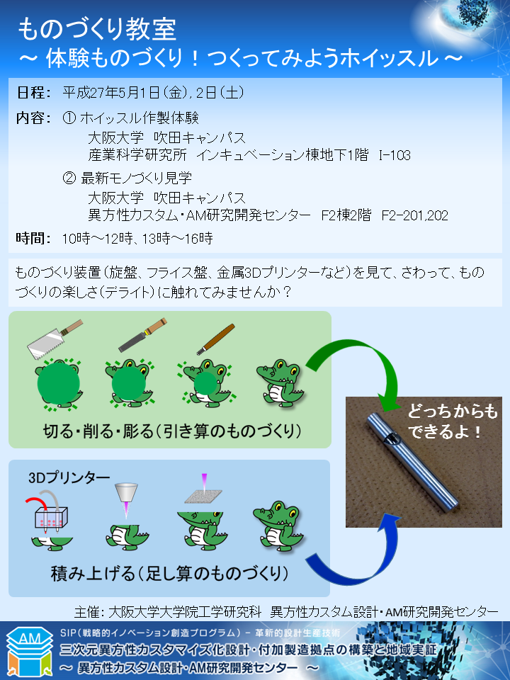 大阪大学 異方性カスタム設計・AM研究開発センターが、ものづくり教室を開催します。 5月1日(金)、5月2日(土)