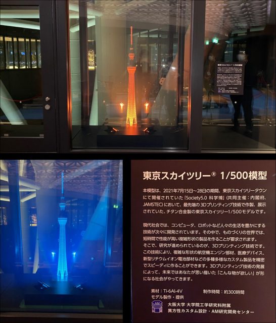東京オリンピックに合わせて開催されたSociety 5.0科学博 での盛況を受け、AMセンターから出展していたTi-6Al-4V製の東京スカイツリー1/500模型(高さ1.3m)が、東京スカイツリー内に常設展示されることになりました。