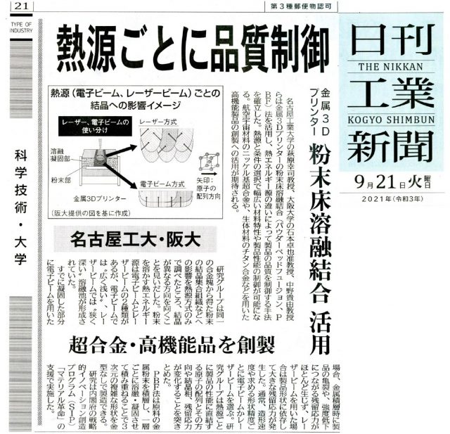 天野宏紀,石本卓也,中野貴由:金属Additive Manufacturingにおける雰囲気ガス選択の重要性:スパッタ,金属微細組織,力学特性への影響,軽金属,72 [5 or 6],(2022), in press.
