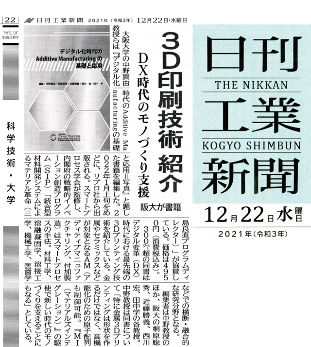 日本機械学会 機会材料・材料加工部門 次世代3Dプリンティング研究会 ~2022年1月セミナー~、 2022年1月13日(木)14:00 〜 15: 00、オンライン(Zoom)
