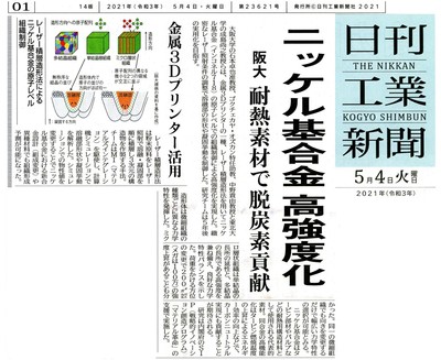 2021年5月4日 日刊工業新聞朝刊 1面