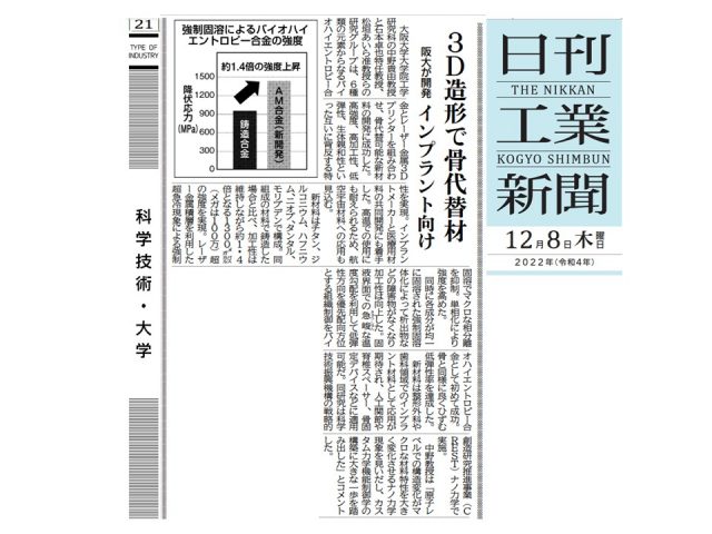 日刊工業新聞、12月8日朝刊、21面科学技術・大学欄
